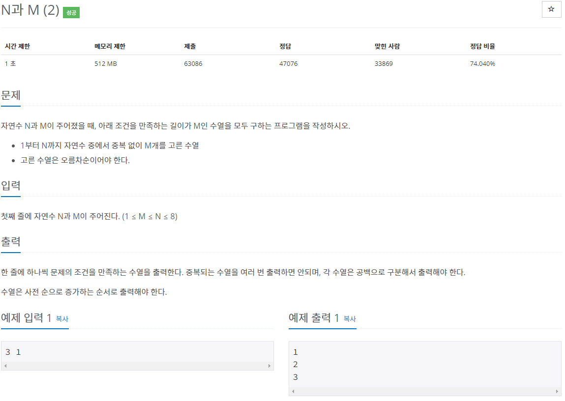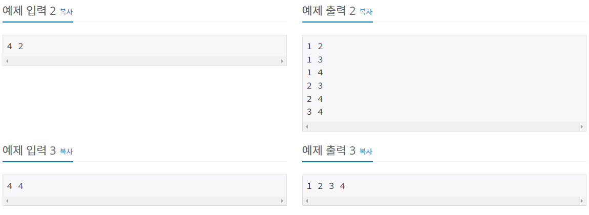 BOJ 알고리즘 문제 풀이, 15650문제 N과 M(2)