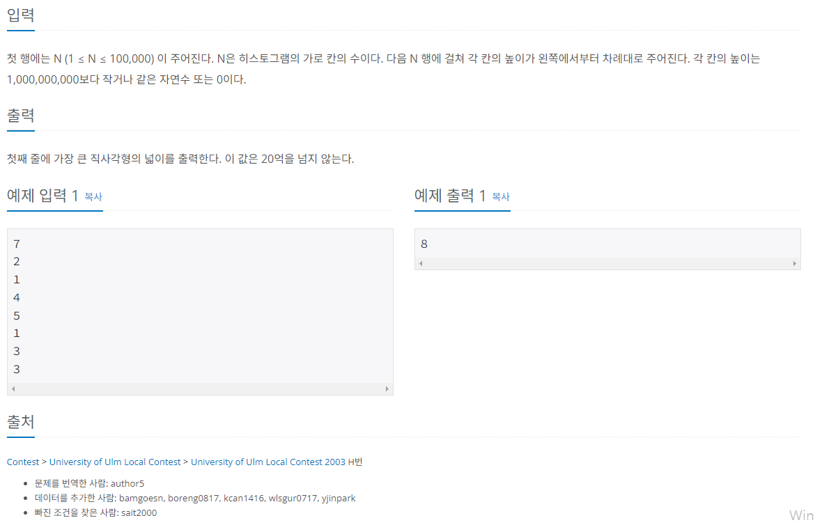 BOJ 알고리즘 문제 풀이, 1725번 문제 "히스토그램"