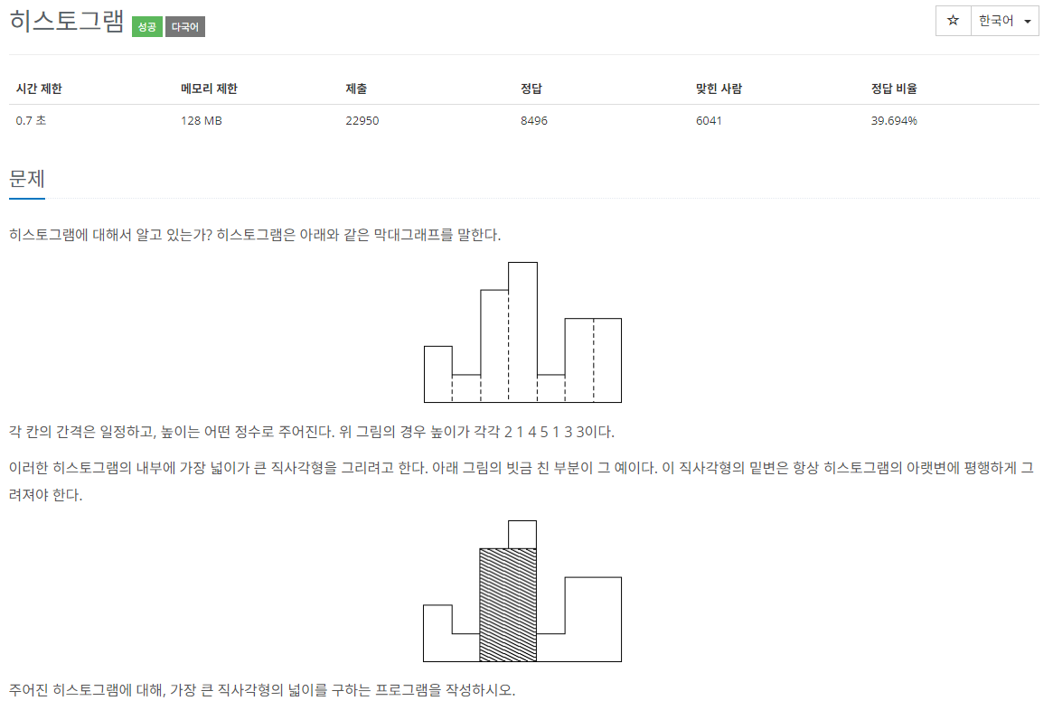 BOJ 알고리즘 문제 풀이, 1725번 문제 "히스토그램"