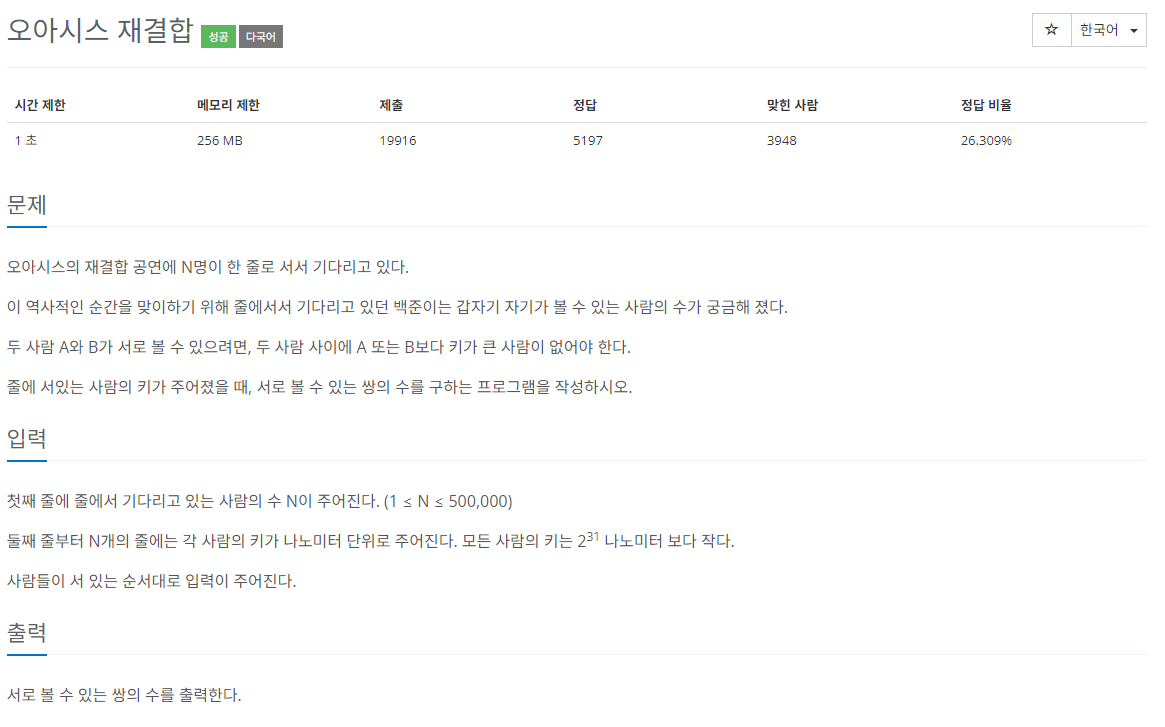 BOJ 알고리즘 문제 풀이, 3015번 문제 "오아시스 재결합"