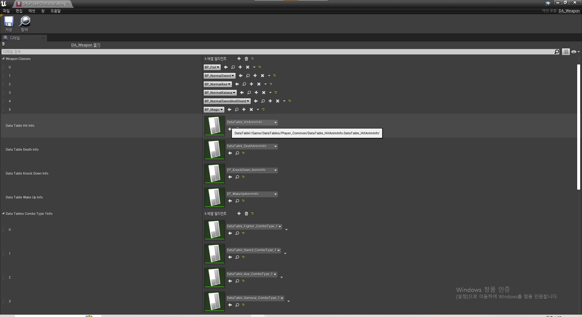 - 특정 Character 객체에 필요한 모든 Data Table들을 하나의 Data Asset으로 묶어 저장합니다.