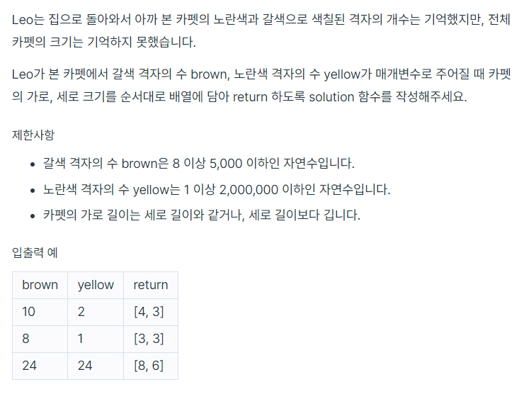 Programmers 알고리즘 문제 풀이, Level 2_카펫