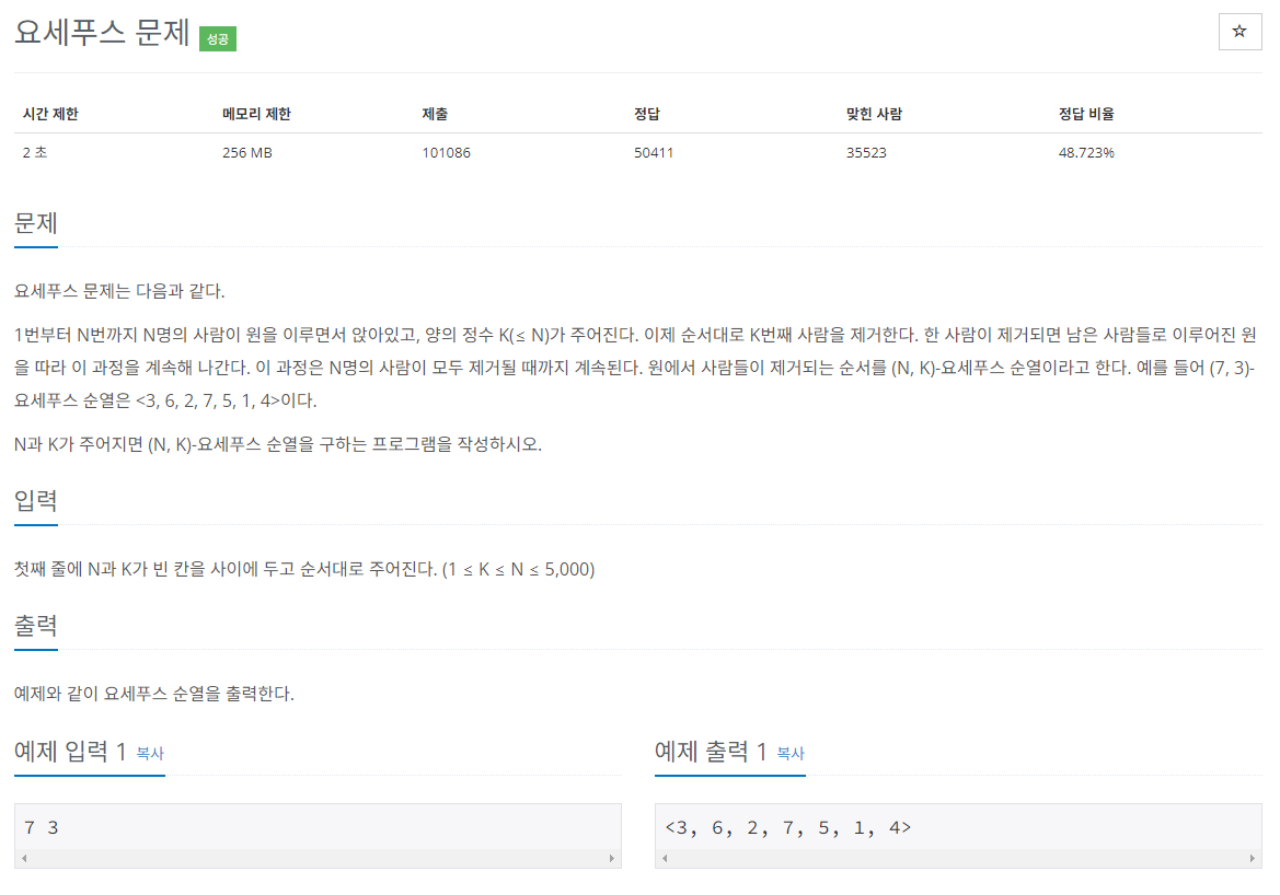 BOJ 알고리즘 문제 풀이, 1158번 문제 "요세푸스 문제"