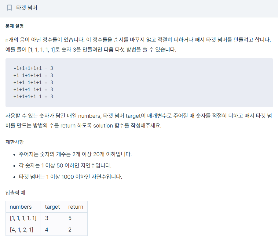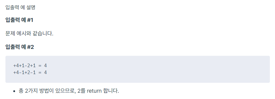 - DFS는 인자 목록 중 'plusOrMinus'를 전달받아, sum 계산에 sum += plusOrMinus * numbers [curIdx] 합니다.