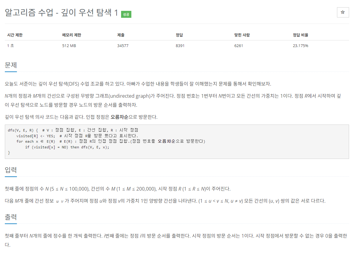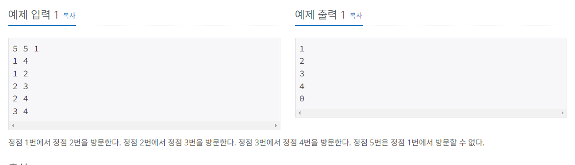 - 먼저, 주어진 간선 정보를 저장하고, 인접 정점들을 오름차순 정렬해 줍니다.