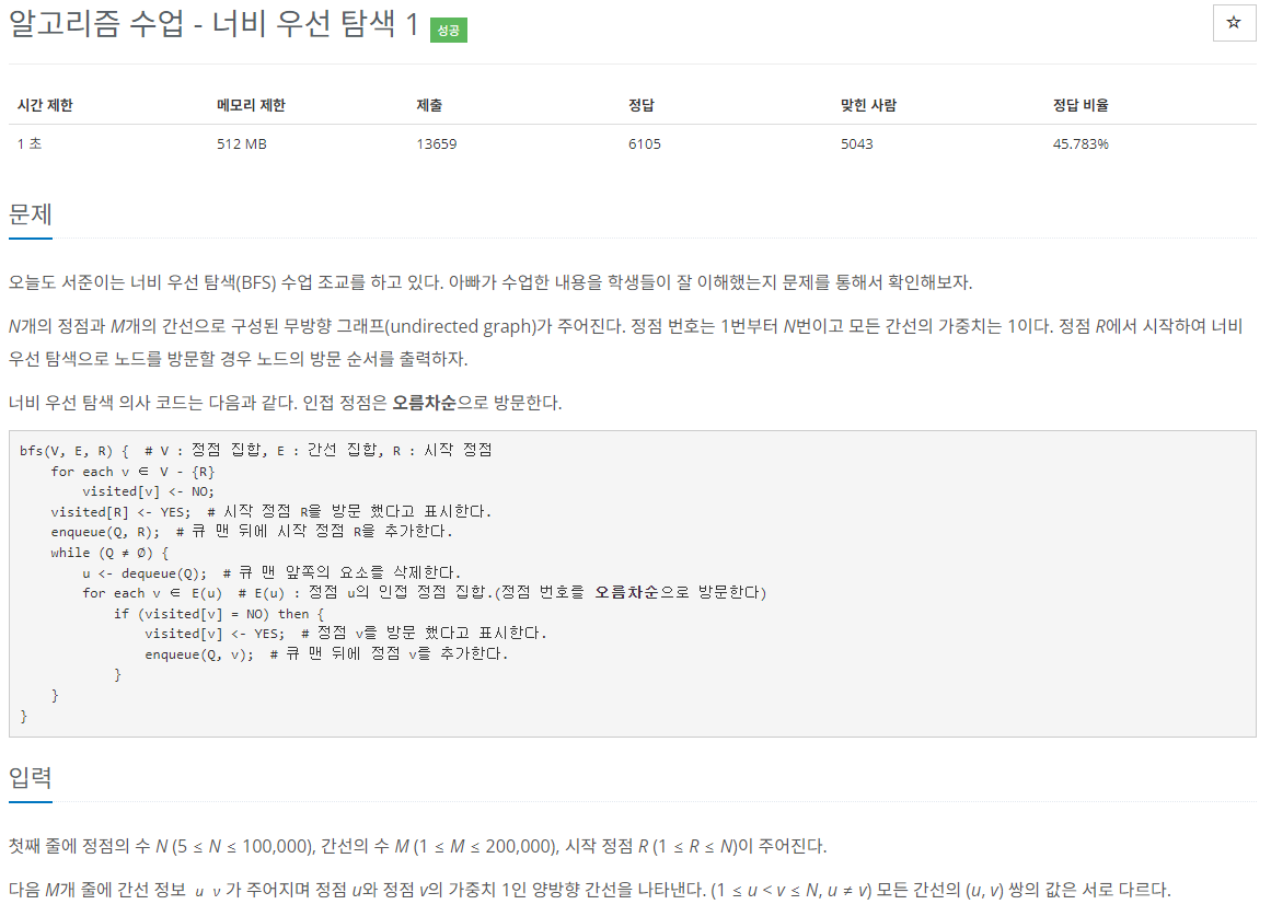 - [정의] : BFS(너비 우선 탐색)은 그래프의 모든 노드를 탐색하는 방법 중 하나입니다.