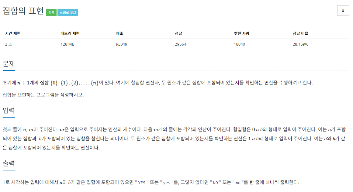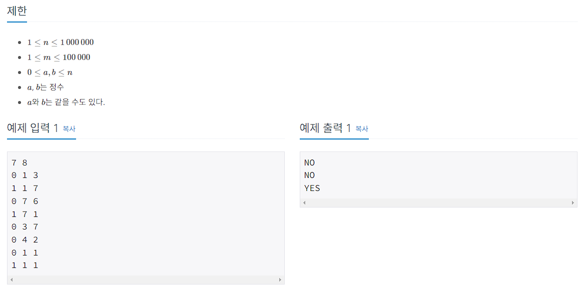 2. 두 원소가 같은 집합이면 NO, 다른 집합이면 YES