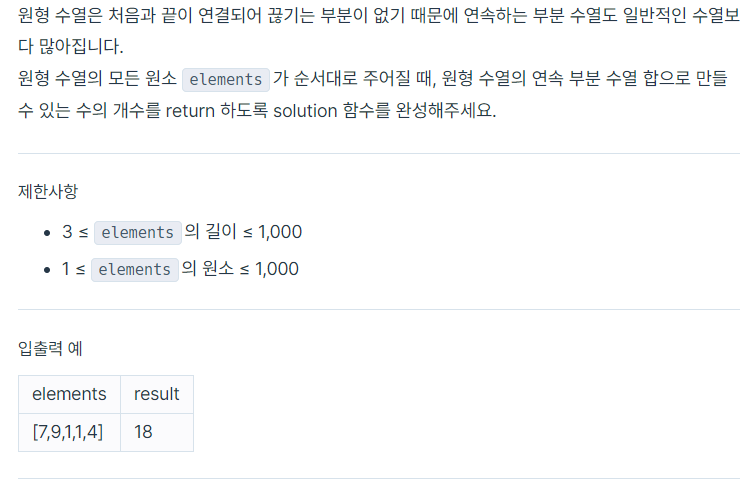 // 최대 연속 부분 수열 개수 = elements.size()