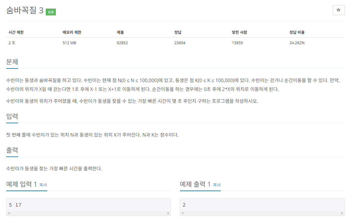 - 다음으로, 걷기를 고려합니다. 다음 위치는 (현재 위치 + 1) 혹은, (현재 위치 - 1)이 되며, 이동 거리에 +1을 해줍니다.