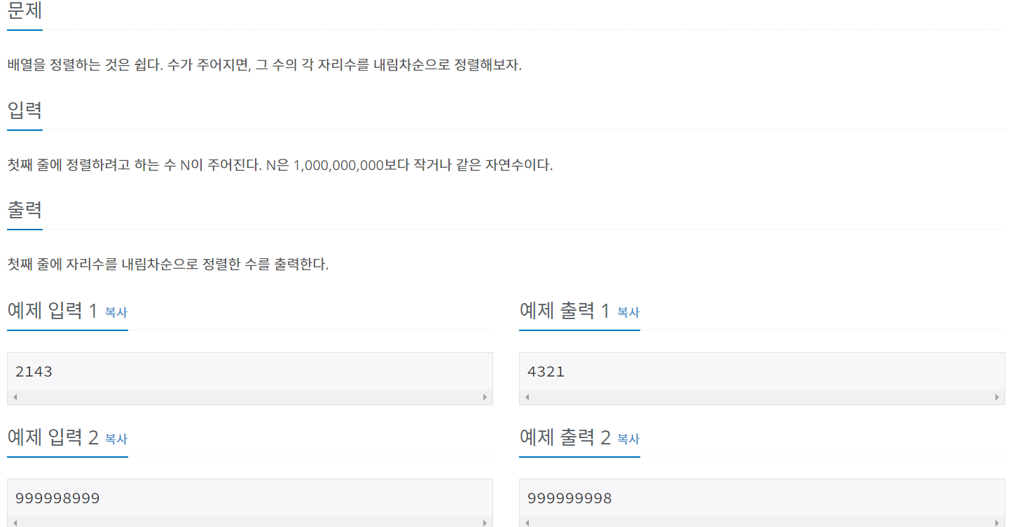 BOJ 알고리즘 문제 풀이, 1427번 문제: 소트 인사이드