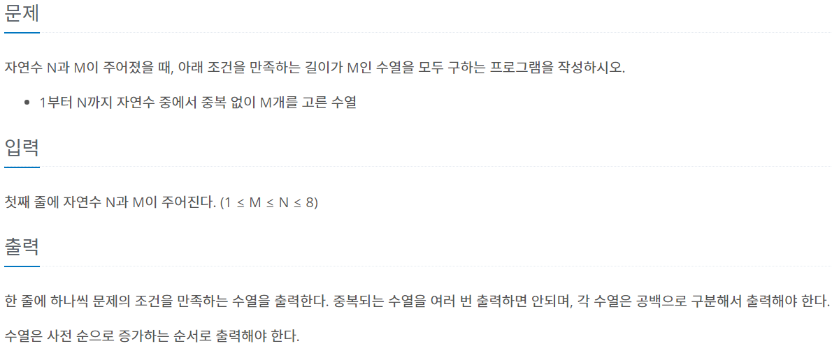 BOJ 알고리즘 문제 풀이, 15649번 문제 : N과 M(1)