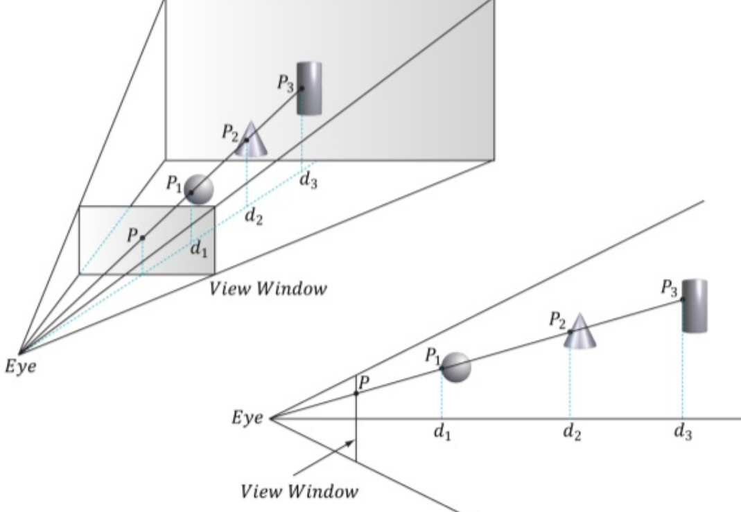 현재 깊이 버퍼의 값은 d = d3, 그리고 P = P3 입니다.