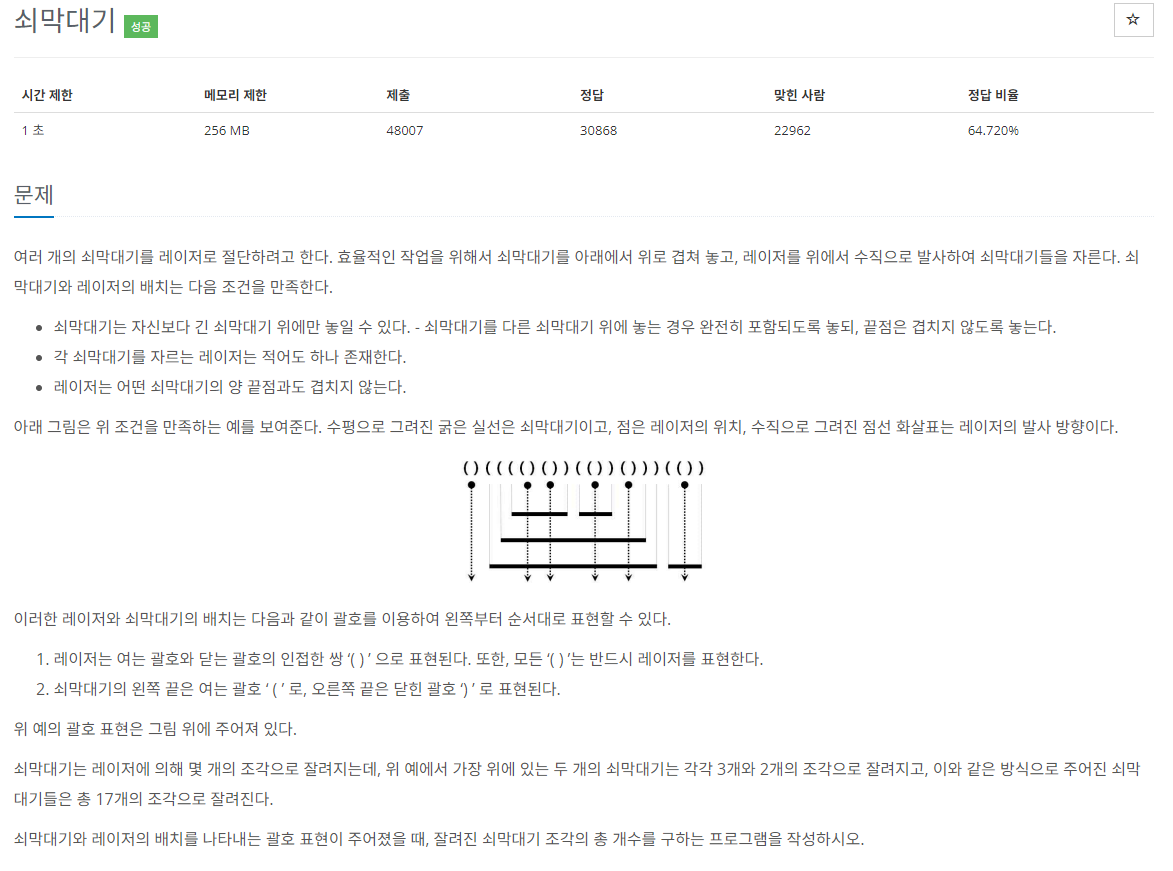 BOJ 알고리즘 문제 풀이, 10799번 문제 "쇠 막대기"